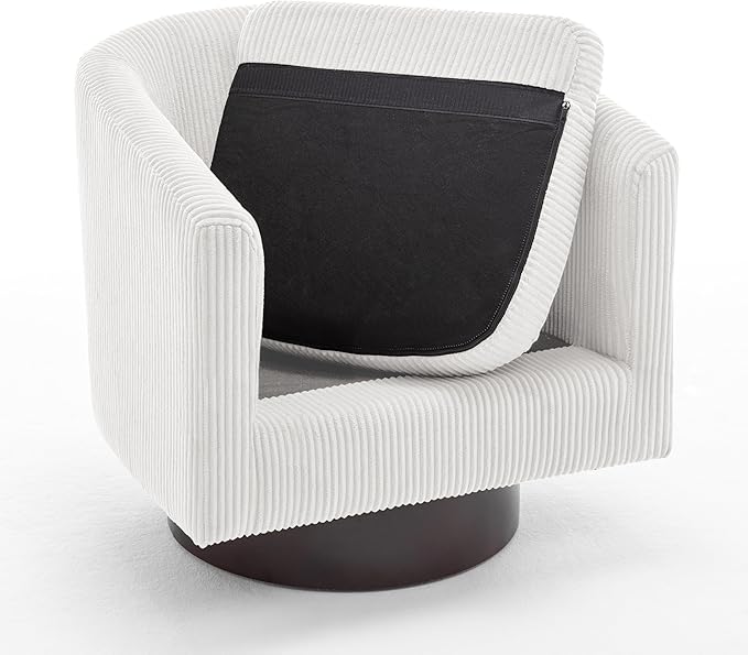 - Comfortable Corduroy Seating - High-density foam cushions, 21" deep seating area and generous seating space for comfort and practicality. The swivel barrel chair is made of corduroy fabric that is soft to the touch and exudes warmth and comfort. Great for small space, office, lobby, makeup room, dining room, waiting room
