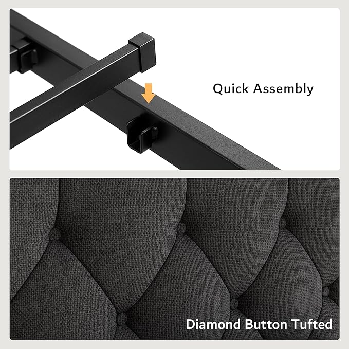 - Comfortable Backrest: The bed frame with headboard features a soft, breathable linen with plush, resilient foam cushioning, providing comfortable back support for lounging and reading. Button tufting keeps headboard secure, making it durable and supportive over time