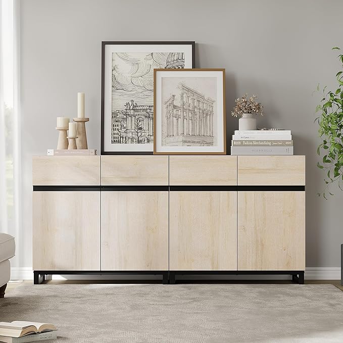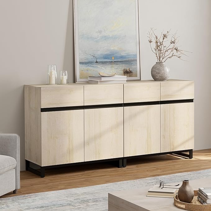 - Modern Design: This TV stand showcases sleek concealed door handles for a clean, minimalist look. The oak grain finish effortlessly blends with various decor styles, from modern simplicity to rustic country or serene pastoral themes, making it a perfect addition to enhance your home's aesthetic.