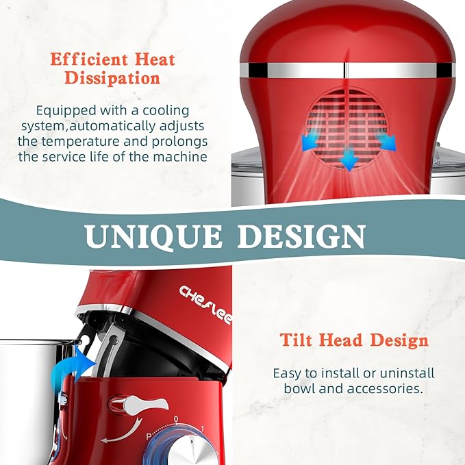 - Durable and Stylish - The CHeflee stand mixer has a powerful 660W pure copper motor,encased in a sleek streamlined design with LED lights serving as stylish power indicator buttons.This kitchen mixer achieves the perfect balance of looks and functionali