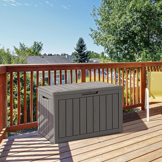 - Material: The patio outdoor storage box is made of resin material, which makes this patio deck storage box waterproof,UV-resistant, anti-fading, suitable for long-term outdoor use.