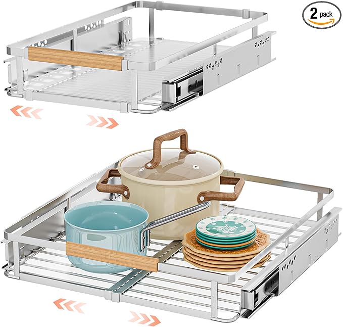 2Pack Expandable Pull Out Cabinet Organizer, Slide Out Drawers for Kitchen Cabinets, Heavy Duty Drawer Slides for Home Kitchen Pantry Cupboard Pots Pans, Adjustable Width 11.8"~18" W x 17.3''D