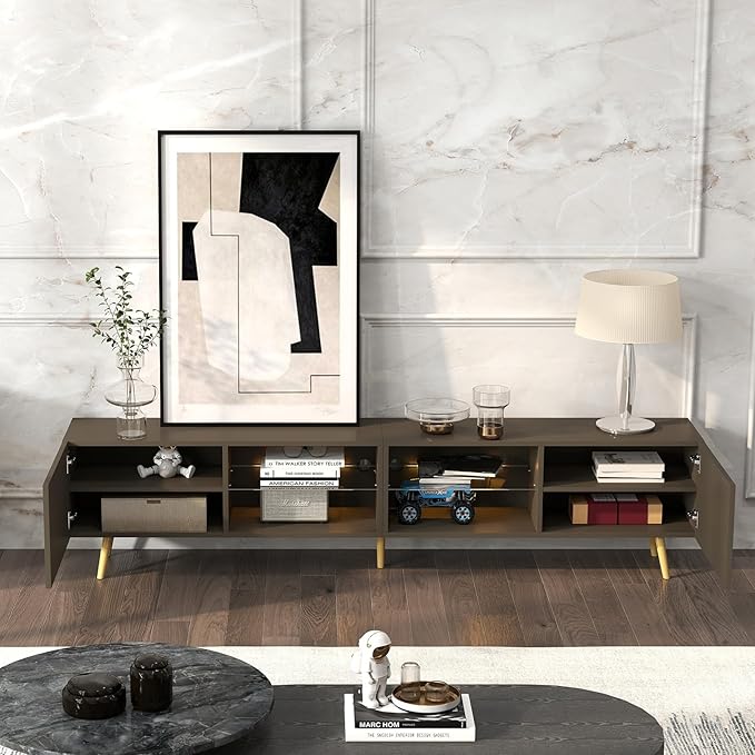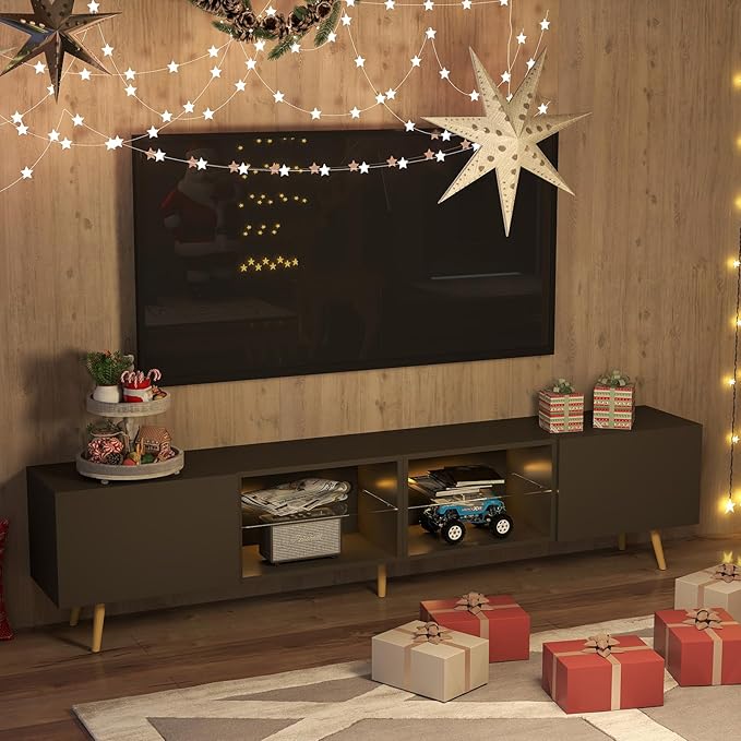 - Long TV Stand: Size-86.6"L * 13.9"W * 19.5"H, this 85+ inch TV stand fits most TV screens from 55" to 100", it can meet your different needs. Tips: Please check if the width of our TV cabinet matches your TV before purchasing.