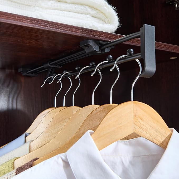 - With Retractable Hangers: Push and pull longitudinally, strong load-bearing capacity, can hang up to 12 pieces of clothing, it maximizes space utilization effectively.