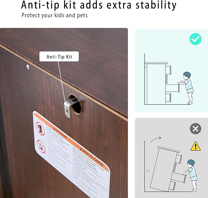 - Anti-tipping Design: The bedroom armoire has an anti-tilt design and pre-drilled holes on the back, which can be securely mounted on the wall to prevent accidental tipping.