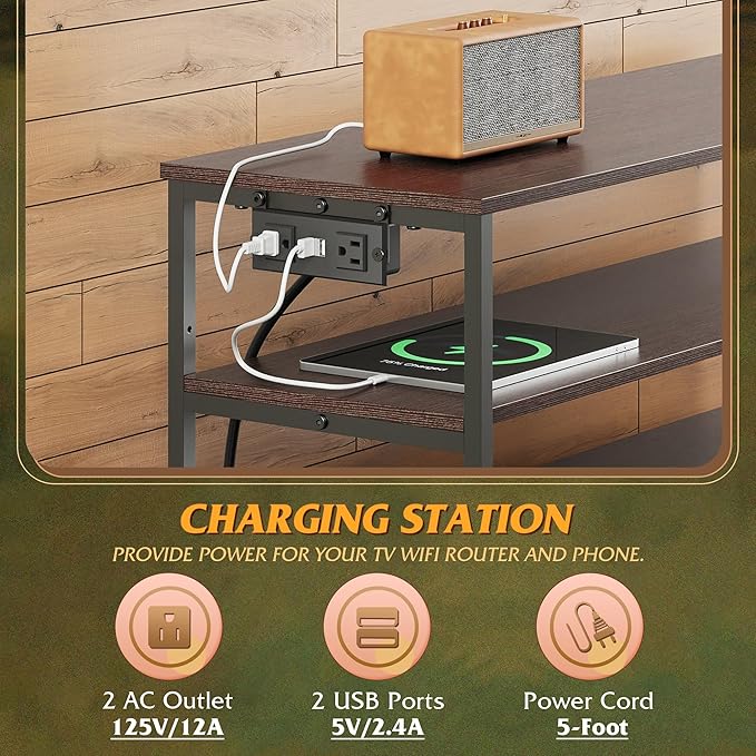 - ă⨠With Power OutletăSay goodbye to messy wires! TV stands is equipped with 2 AC sockets +2 USB ports, 1.5m flexible cable length, TV, game console, router a power board can be done, instant increase desktop cleanliness by 50%, through UL/ETL certification, electricity safety!
