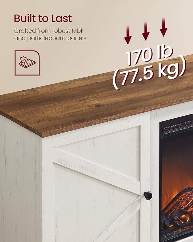 VASAGLE Fireplace TV Stand for TVs up to 65 Inches, 18-Inch ELectric Fireplace with Remote, Farmhouse Entertainment Center, Media Console Table for Living Room, Rustic White and Honey Brown ULTV540W01