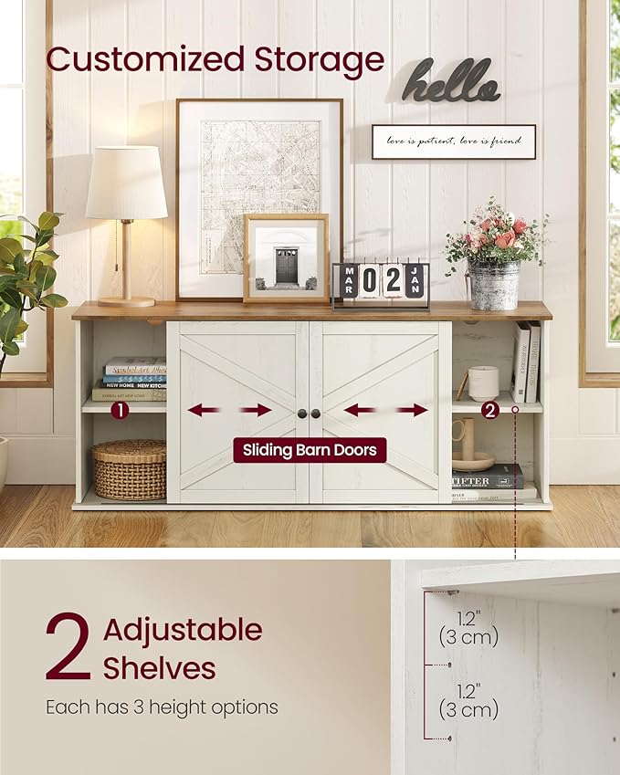 - Ample & Adaptable: Organize media devices and daily items in 4 compartments, separated by 2 adjustable shelves to fit items of various sizes. Slide the barn doors of this farmhouse TV stand to hide or display items as you like