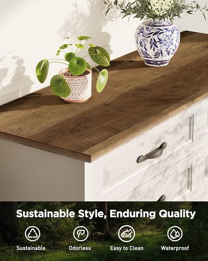 - Sturdy & Durable High-Density Wood Construction: Crafted from high-density P2 engineered wood, this white dresser meets CARB & EPA standards, ensuring a safe, durable, and eco-friendly storage solution. The sealed edges enhance longevity while giving it a refined, modern look.