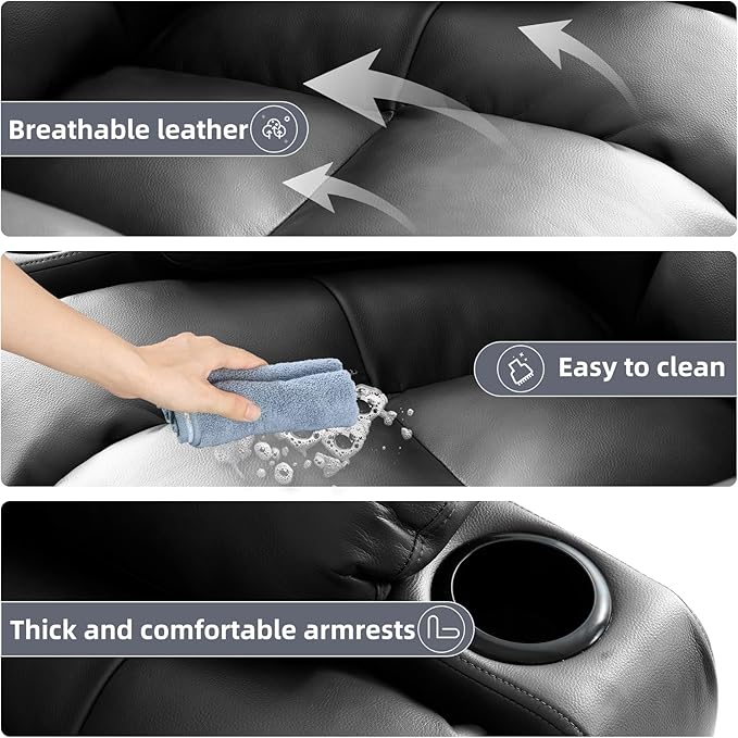 - [Comfortable and Durable]Experience unprecedented comfort and durability. Our leather material is not only breathable, but also durable, ensuring a smooth and soft feel, making you more relaxed. The backrest, seat cushion, and armrests are all filled with high-density sponge, which conforms to ergonomic principles and can tightly embrace your body. The sturdy metal frame can withstand a maximum weight of 350 pounds, ensuring long-lasting and reliable use