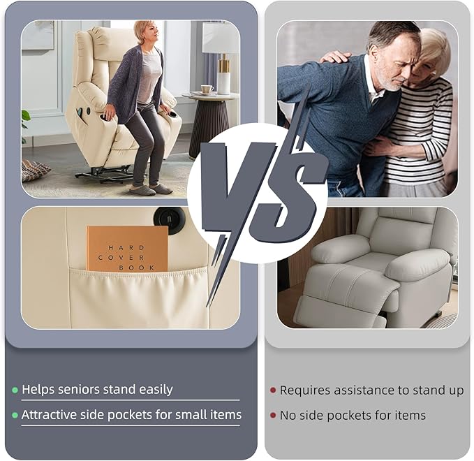 - [Electric lifting and standing assistance]Our balance lifting mechanism is driven by a powerful German OKIN motor, providing seamless standing assistance. Smoothly enhancing the overall stability of the chair, allowing users to effortlessly ascend without putting pressure on their back or knees. This feature is particularly beneficial for elderly people, pregnant women, or those who have difficulty standing from a sitting position