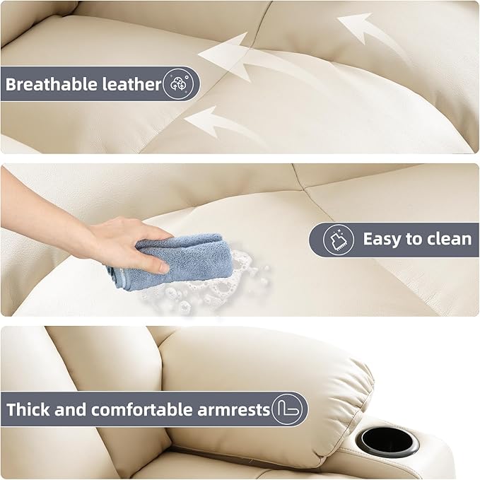 Power Lift Recliner Chair for Elderly, Electric Recliner Chairs for Adults with Massage and Heat, Cup Holders, Remote Control, USB Ports, Side Pockets, Leather (Beige)