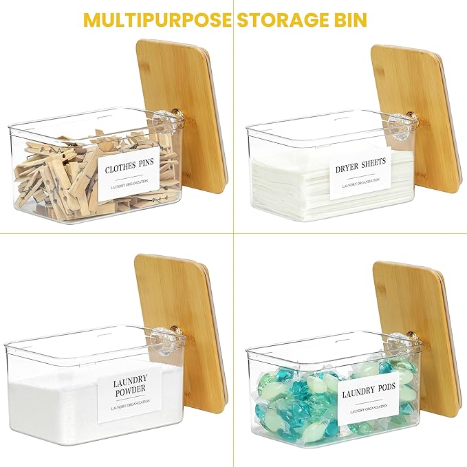 - 【Crystal Handle & 12 PCS Labels】The stylish handle not only adds a modern touch with its smooth and transparent appearance, but also provides a comfortable grip and making it easy to open and close the lid. Our laundry detergent organizer come with 12 clearly categorized, waterproof labels, easy to peel off and leave no adhesive residue.