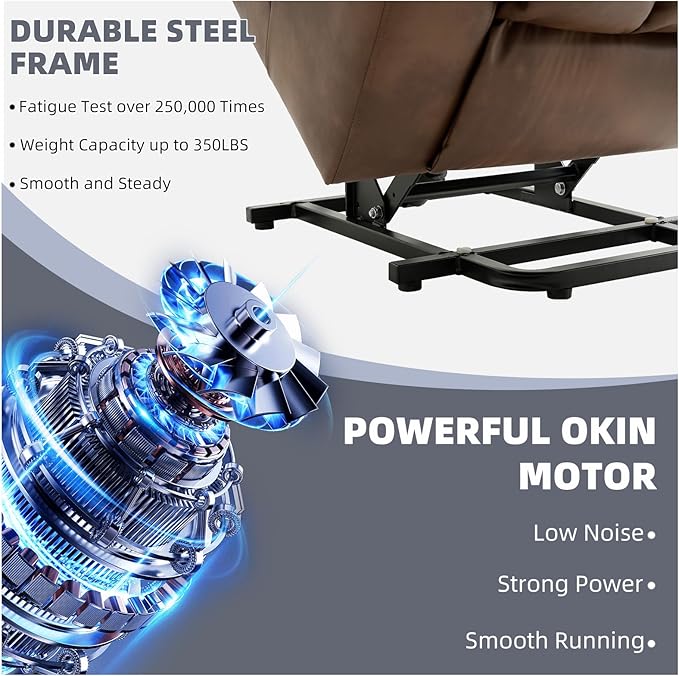 - [Electric lifting and standing assistance]Our balance lifting mechanism is driven by a powerful German OKIN motor, providing seamless standing assistance. Smoothly enhancing the overall stability of the chair, allowing users to effortlessly ascend without putting pressure on their back or knees. This feature is particularly beneficial for elderly people, pregnant women, or those who have difficulty standing from a sitting position