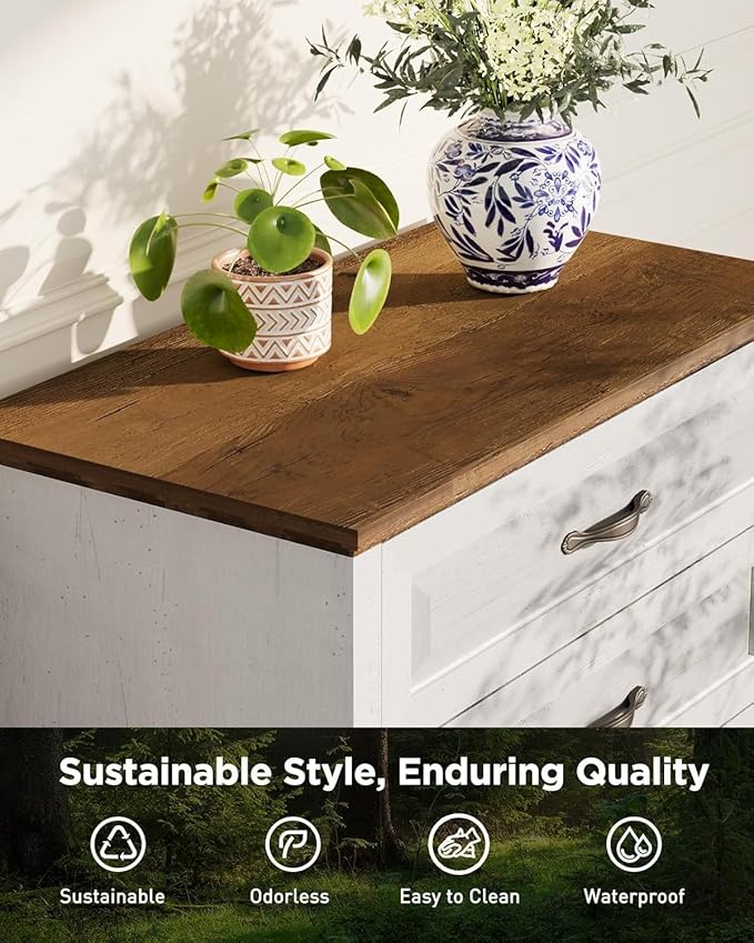 - Sturdy & Durable Construction: Crafted from P2 engineered wood, this white dresser meets CARB & EPA standards, ensuring a safe, durable, and eco-friendly storage solution. The sealed edges add to its refined look while enhancing longevity.
