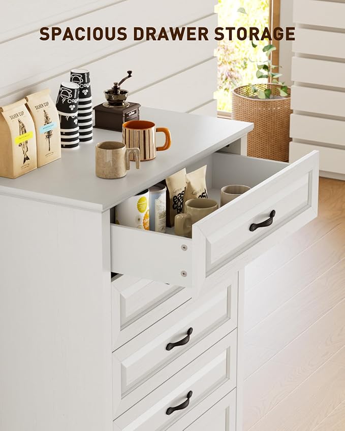 Amada Farmhouse 5 Drawer Dresser for Bedroom with Wood Drawers, Supports up to 22 lbs per Drawer, Anti-Tip Design for Safety, 5 Dresser Drawer Unit for Bedroom, Hallway, White