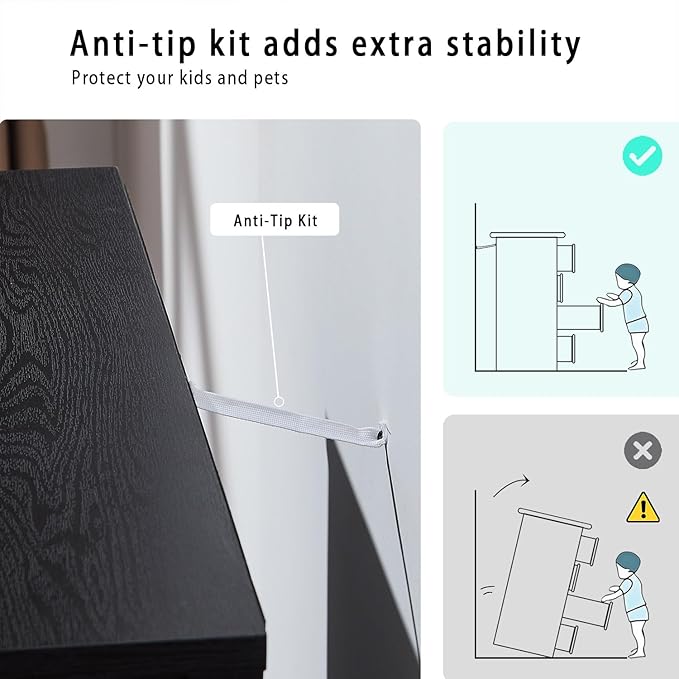 - Sturdy Wooden Construction: Crafted entirely from high-quality engineered wood, this tall dresser for bedroom offers stability and durability. Its elevated base enhances stability, ensuring safe and reliable use for years to come.