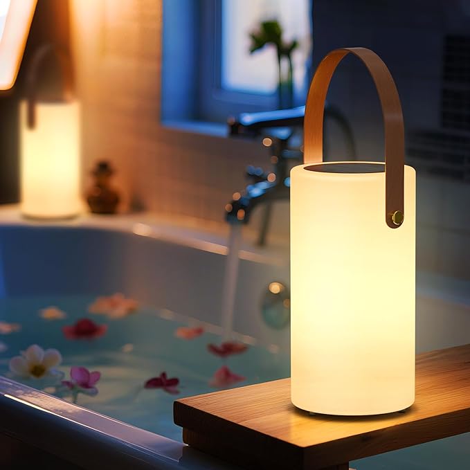 - Soft LED Light: This battery-operated table lamp features energy-efficient, long-lasting, safe LED lighting, offering both warm white and RGB colors. Adjust the brightness to suit different environments, and enjoy the simulated candle mode for a cozy ambiance