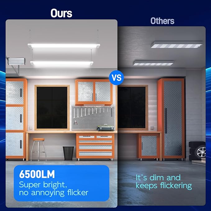- ✅ Linkable - 4ft linkable led shop light use plug connection to connect up to 6 pcs together in your garages, workshops, workbench areas, storage areas, warehouses, basements, equipment rooms, etc.
