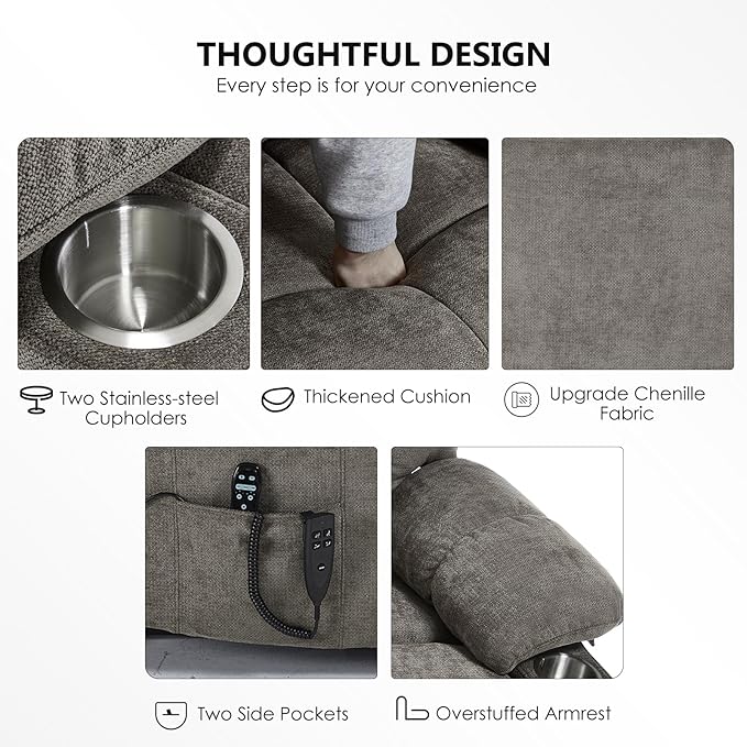 - Cup Holders and Side Pockets: The big recliner chair oversized comes with two stainless steel cup holders and side pockets. You can have a drink while relaxing and easily get essentials from the side pockets. These designs greatly enhance your wide recliner chairs for adults experience.