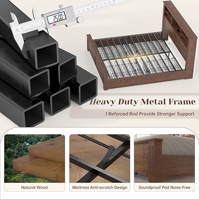 - 【900LBS Sturdy Queen Size Bed Frame】 Queen bed frame have 12 metal slats and 9 reinforced legs, and heavy-duty metal structure make the bed frame sturdy and durable, ensuring your comfortable sleeping experience, providing strong support for the mattress and your body. Compared to other queen bed frame, we have 20% more wooden slats and supporting feet, which is more stable and safe. It can withstand 4 men of 200LBS at the same time.