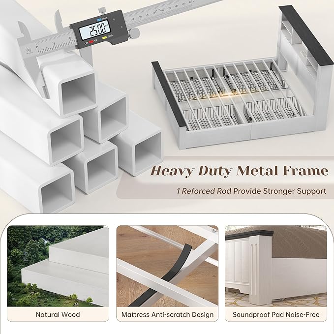 - 【NO Noise & No Box Spring Needed Full Bed Frame with Headboard】 On the Full bed frame with storage we made a mute sponge strip design, and we used the pasting method to fastened the supporting wooden slats to effectively prevent the bed framewith storage from creaking, our Full size bed frame ensure your comfortable sleep. We don't need box Spring for this upholstered bed frame Full. This link is for Full size bed frame with storage only, mattresses need to be purchased separately.