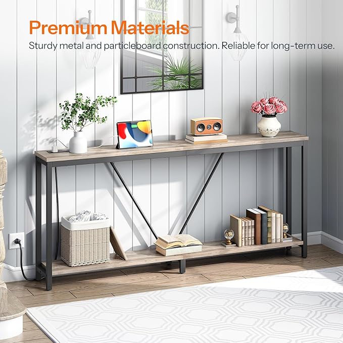 - Versatile Sofa Table: The 2-tier design makes this narrow console table with 2 power outlets and USB ports perfect for behind the couch, in the entryway, or bedroom. Store everyday essentials like keys and bags, or display photo frames and ornaments, adding both functionality and style to your home
