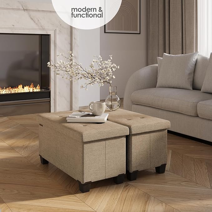 - Durable Fabric Ottoman: Organize essentials and accessories with this multipurpose storage ottoman bench that provides you with a comfortable seat for putting on socks and shoes, while making a statement as an end of bed storage bench or entry bench with storage.