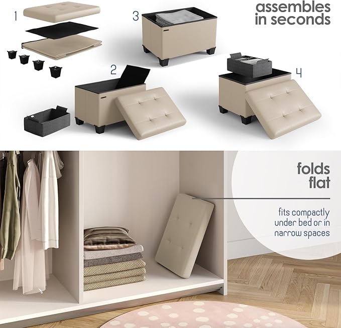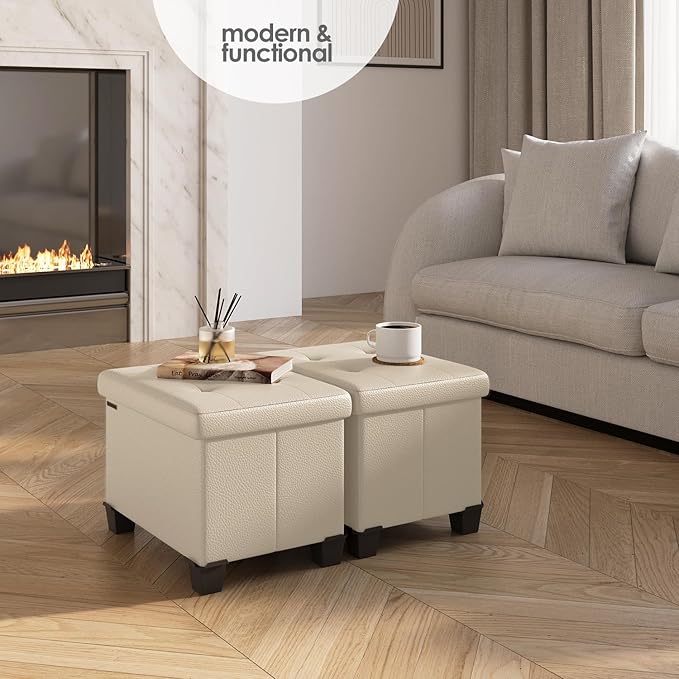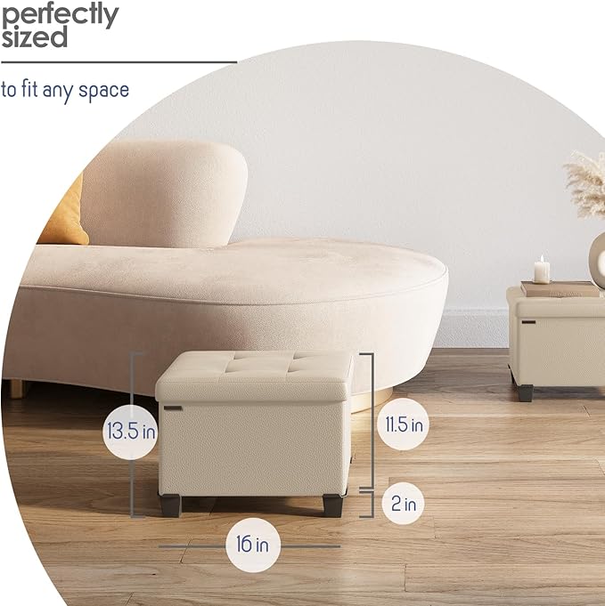 - Beige Ottoman Storage Cube: This storage ottoman with storage for living room decor transforms your space and reduces clutter, and can be used as a foot stools ottoman, storage chest or small ottoman foot rest. Max weight 330 lbs.