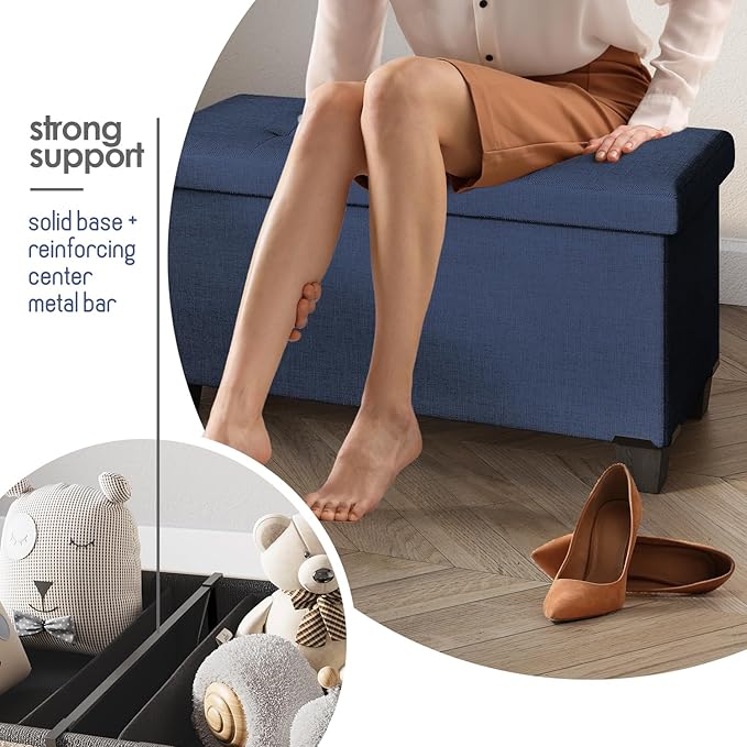 STORAGEBUD Storage Ottoman Bench with Bins, 30-in Storage Bench for Bedroom End of Bed, Folding Foot Rest Ottoman for Living Room Max 660lbs, Fabric Ottomans, Blue