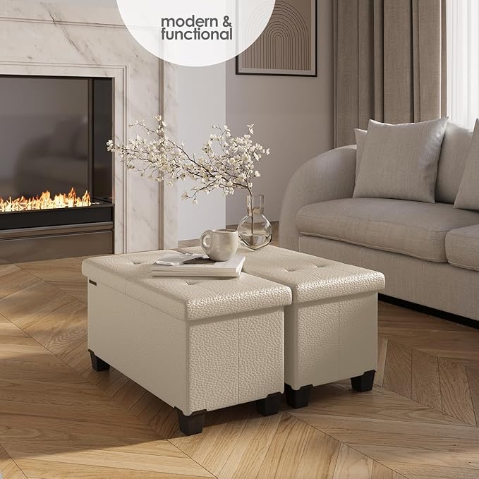 - Tufted Ottoman Bench with Storage: Our foot rest ottoman with storage for living room decor transforms your space and reduces clutter, and can be used as a storage ottoman coffee table or additional seat, supporting a max weight of 660 lbs.