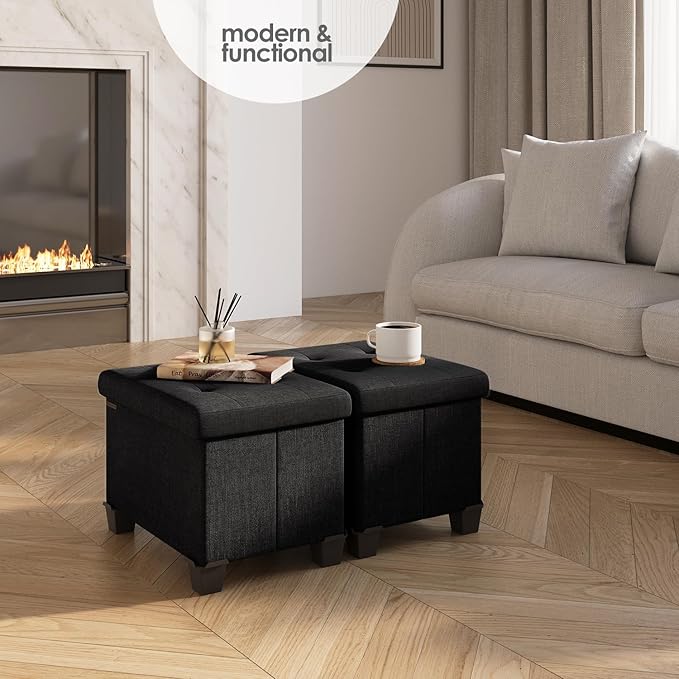 - Black Ottoman Storage Cube: This storage ottoman with storage for living room decor transforms your space and reduces clutter, and can be used as a foot stools ottoman, storage chest or small ottoman foot rest. Max weight 330 lbs.