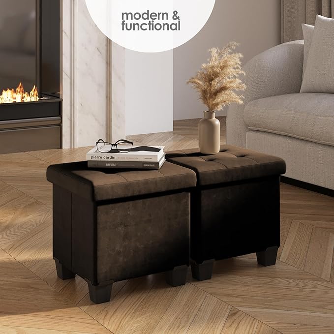- Brown Ottoman Storage Cube: This storage ottoman with storage for living room decor transforms your space and reduces clutter, and can be used as a foot stools ottoman, storage chest or small ottoman foot rest. Max weight 330 lbs.