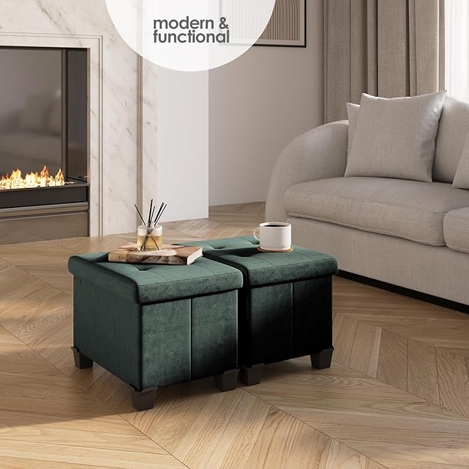- Green Ottoman Storage Cube: This storage ottoman with storage for living room decor transforms your space and reduces clutter, and can be used as a foot stools ottoman, storage chest or small ottoman foot rest. Max weight 330 lbs.