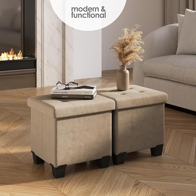 - Taupe Ottoman Storage Cube: This storage ottoman with storage for living room decor transforms your space and reduces clutter, and can be used as a foot stools ottoman, storage chest or small ottoman foot rest. Max weight 330 lbs.
