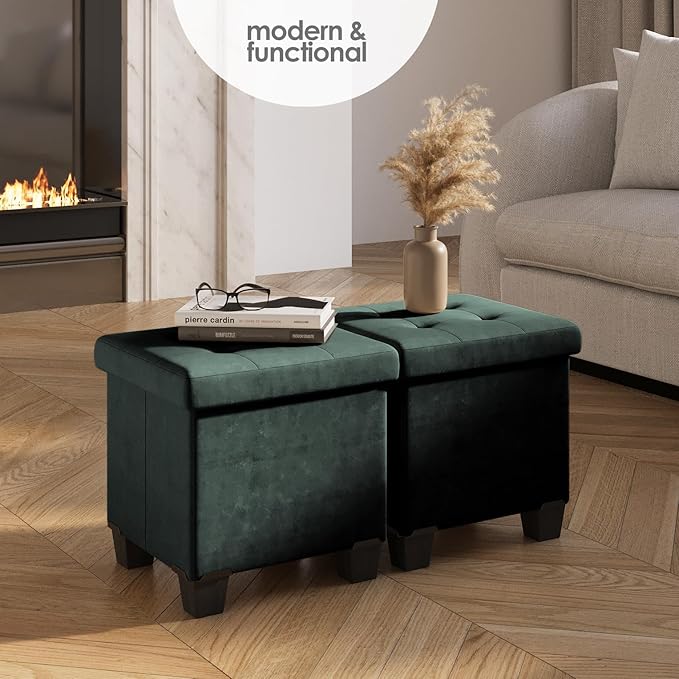 - Green Ottoman Storage Cube: This storage ottoman with storage for living room decor transforms your space and reduces clutter, and can be used as a foot stools ottoman, storage chest or small ottoman foot rest. Max weight 330 lbs.