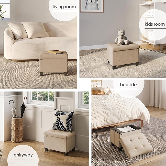 - Taupe Ottoman Storage Cube: This storage ottoman with storage for living room decor transforms your space and reduces clutter, and can be used as a foot stools ottoman, storage chest or small ottoman foot rest. Max weight 330 lbs.
