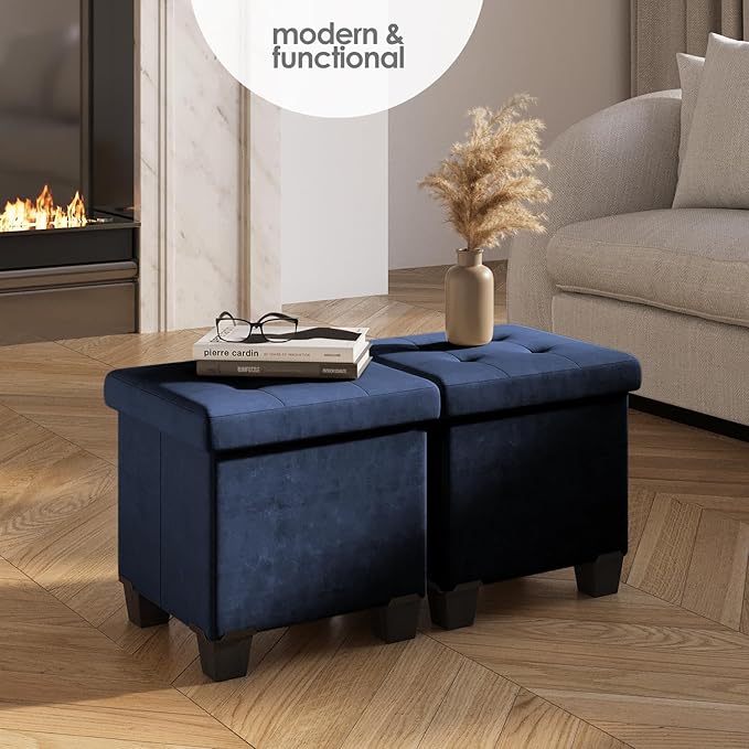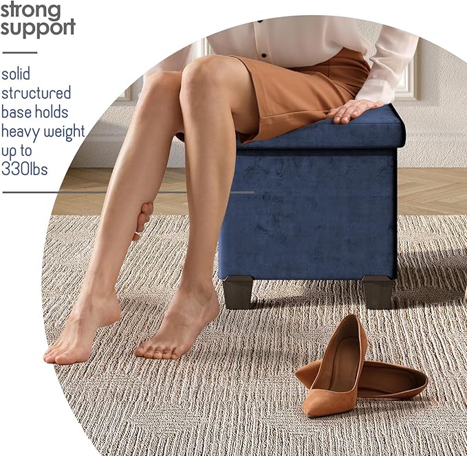 - Blue Ottoman Storage Cube: This storage ottoman with storage for living room decor transforms your space and reduces clutter, and can be used as a foot stools ottoman, storage chest or small ottoman foot rest. Max weight 330 lbs.