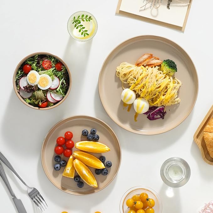 - 【Dinnerware set for 6】 Includes 6 dinner plates (10.25"), 6 salad plates (8.25"), and 6 bowls (26oz), perfect for serving everyday meals or special occasions.