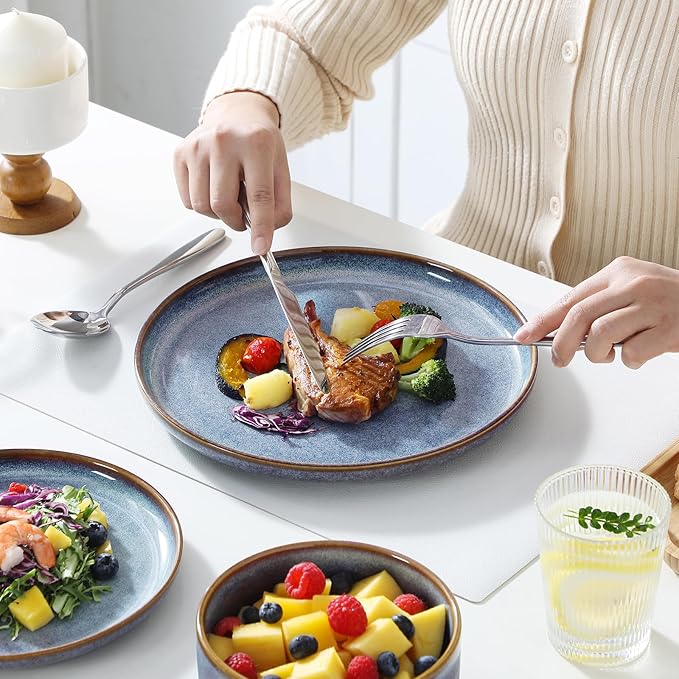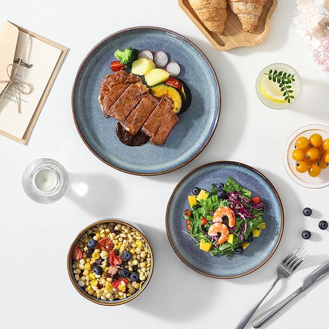 - 【Unique Reactive-Glazed Artistry】Crafted using an intricate reactive-change glazing process, each piece undergoes a stunning transformation in the high-temperature reaction, creating one-of-a-kind color variations and patterns. No two plates or bowls are exactly alike, making every set uniquely beautiful.