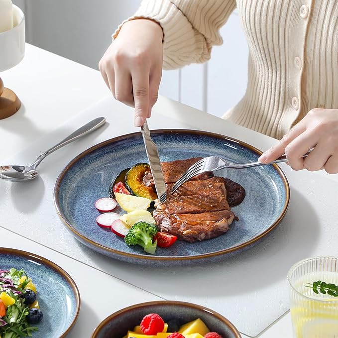 - 【Unique Reactive-Glazed Artistry】Crafted using an intricate reactive-change glazing process, each piece undergoes a stunning transformation in the high-temperature reaction, creating one-of-a-kind color variations and patterns. No two plates or bowls are exactly alike, making every set uniquely beautiful.