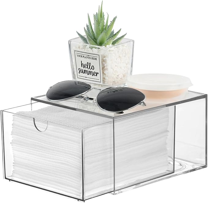 - SMOOTH-OPERATING DRAWER: Equipped with a curved handle, the smooth sliding drawer of this plastic face tissue storage container provides fast and effortless access to stored items. The drawer glides with a gentle pull, making it easy for daily use.