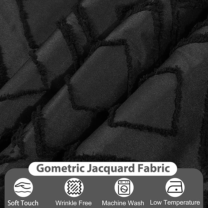 No Hook Shower Curtain Set with Snap in Liner, Black Jacquard Tufted Geometric Bath Curtain, Boho Luxury Hotel Bathroom Decor, Waterproof Washable, 71 x 86 Inch