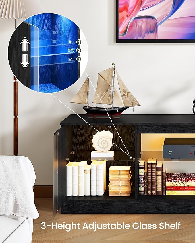 - Modern Aesthetic Style: With fashion design concepts, this TV cabinet combines translucent doors with side tempered glass partitions, displaying the contents inside the cabinet while highlighting a stylish and unique charm to your space