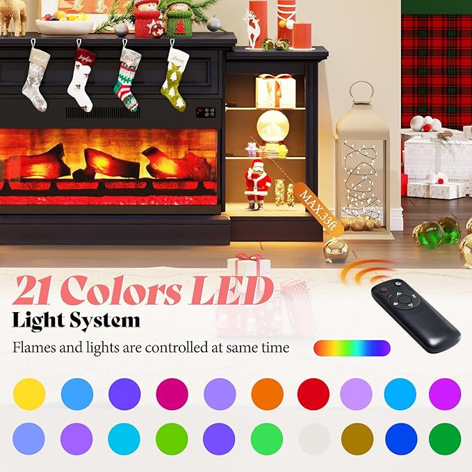- 【Built-in 36" Fireplace】 The 36-inch integrated electric heater offers quiet, efficient, and safe warmth with adjustable temperatures between 64°F and 86°F. It also includes a timer (1-8 hours) and overheat protection for added safety and peace of mind