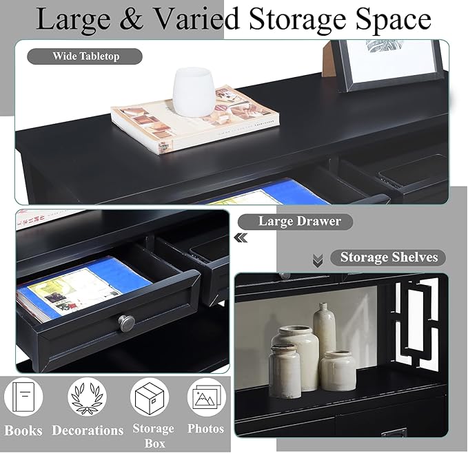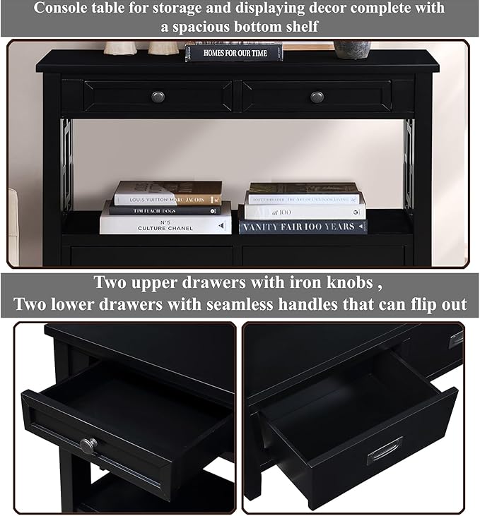 - [Functional Storage] This console table is equipped with four drawers and one storage shelf, drawers and bottom shelves provide plenty of storage space for items of different sizes.