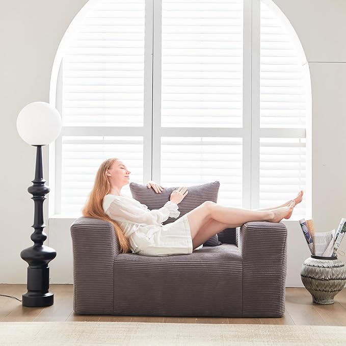 - Premium Corduroy Fabric – Soft, Skin-Friendly & Breathable: Made with high-quality corduroy, this sofa chair offers a velvety-soft touch, making it incredibly comfortable to sit on. The breathable fabric keeps you cool in summer and warm in winter, ensuring year-round comfort.