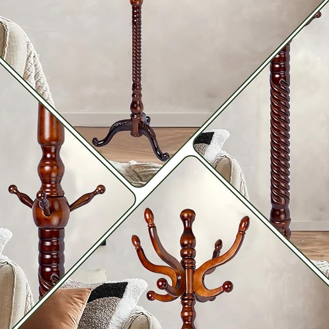 - STABLE NATURAL WOOD COAT RACK STAND:Stability is an important feature of the independent coat stands. The 16.92 "wide triangular base provides a solid and stable foundation for this coat rack. The force is more uniform, The heavy-duty round base avoids shaking or tipping over when hanging or removing heavy winter clothes or bags. sturdy coat rack stand vintage