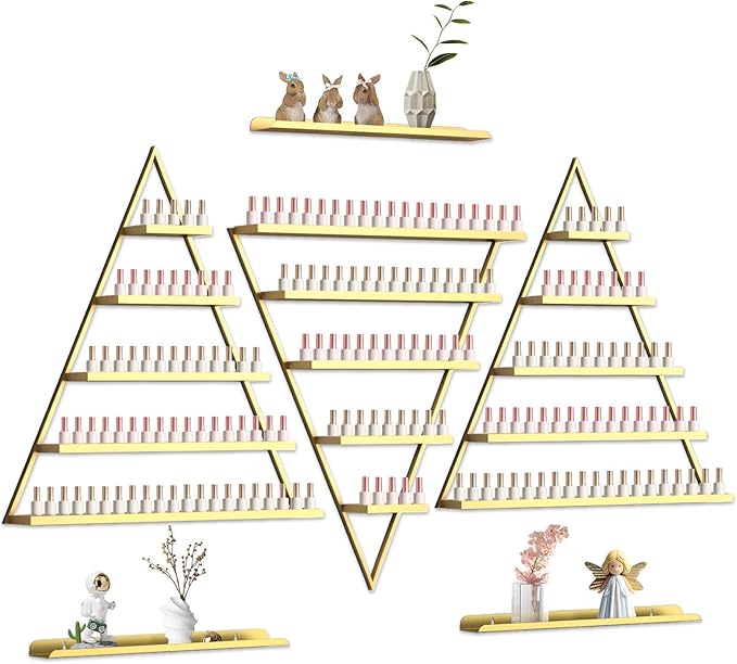 - 【Multi Function】: The triangular shelves are not only suitable for nail salons but also for home use, spa, and shop, perfect for interior decoration, do not take up much space and aesthetically pleasing, can be used to accommodate kinds of items like cosmetic bottles, perfume, lipstick, vase, eyeglasses, photo frame, etc.
