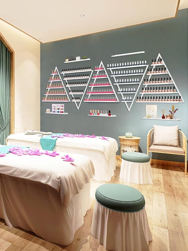 - 【Multi Function】: The triangular shelves are not only suitable for nail salons but also for home use, spa, and shop, perfect for interior decoration, do not take up much space and aesthetically pleasing, can be used to accommodate kinds of items like cosmetic bottles, perfume, lipstick, vase, eyeglasses, photo frame, etc.